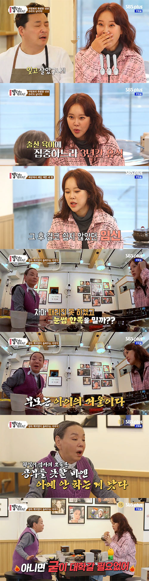 백지영은 '나중에 꼭 너 같은 딸 낳아라'라는 말처럼, 나중에 (딸이) 나랑 똑같은 행동을 하면 어떡하지"라며 걱정하는 마음을 내비치며 사춘기가 된 딸이 자신과 같은 행동을 한다면 "마음이 아파서 때리진 못하겠고 (놀러 다니지 못하게) 눈썹 한쪽을 밀까 고민 중이다"라고 폭탄 발언을 해 김수미를 당황케 했다.