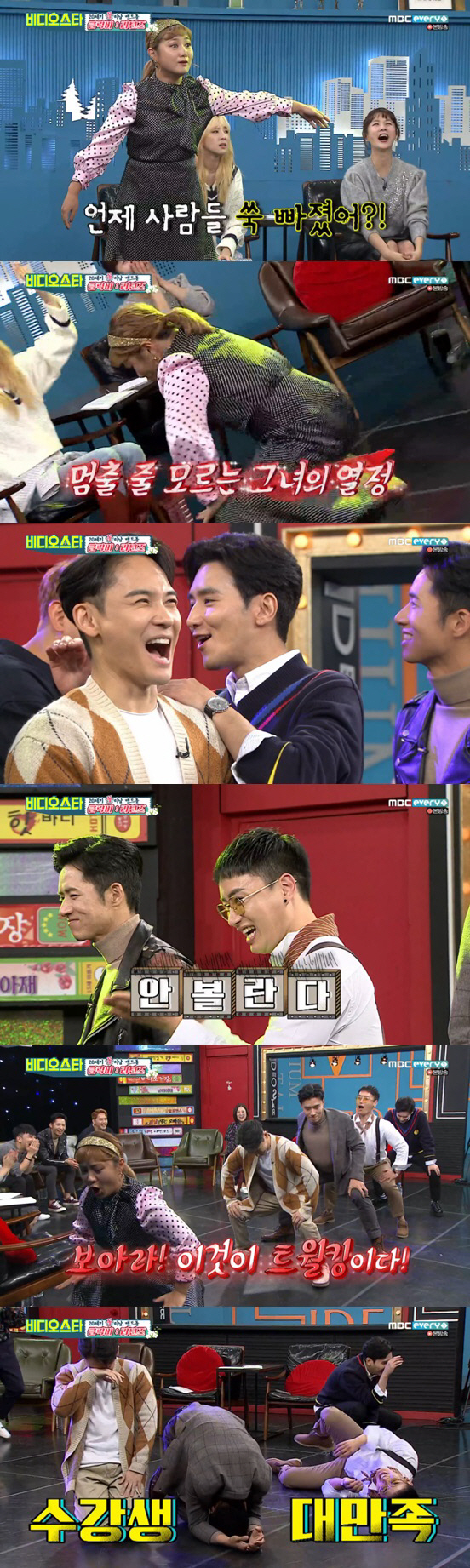 [스포츠조선닷컴 정유나 기자] '비디오스타' 클릭비가 박나래의 화끈한 트월킹 춤을 보고 깜짝 놀랐다.