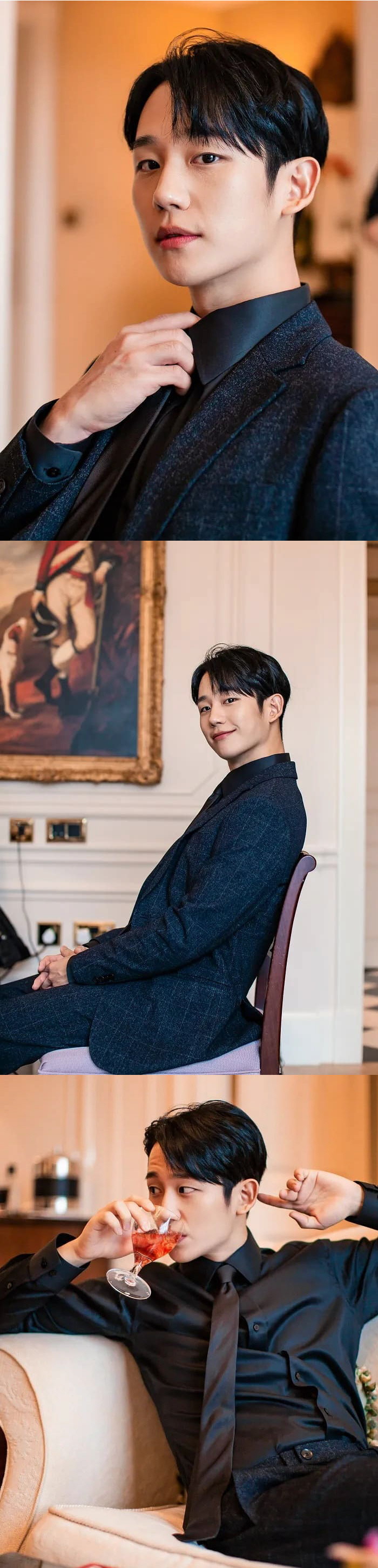 공개된 사진 속에는 우월한 수트핏을 선보이고 있는 정해인의 모습이 담겨있다. 이때 카메라를 향해 선보이고 있는 정해인의 환한 미소부터 부드러우면서도 강렬한 눈빛은 시선을 집중시켰다.
