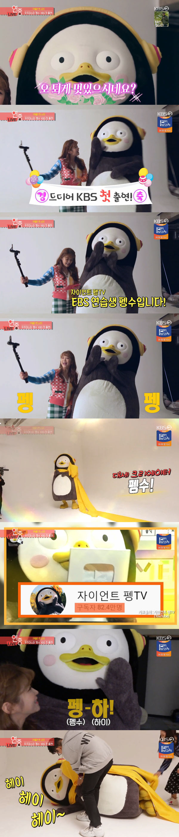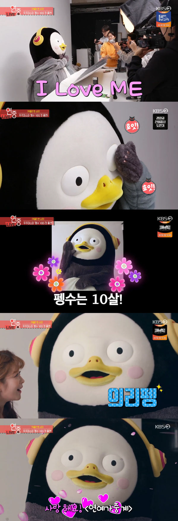 22일 방송된 KBS2 '연예가중계'의 '위클리 핫 스타'에서는 '우주대스타' 펭수가 처음으로 KBS에 출연했다.