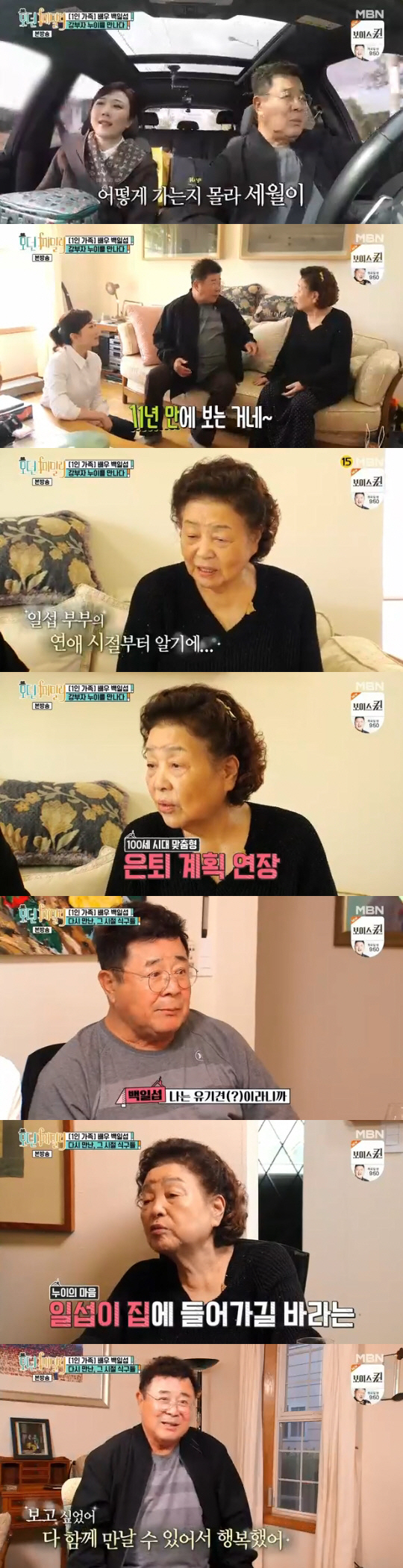 드라마 종영 이후 11년 만에 처음 만난다는 백일섭과 강부자는 반갑게 포옹했다. 근황을 주고받던 중 강부자는 백일섭의 어깨를 툭 치며 "근데 왜 그랬냐"며 일침을 날렸다. 그러면서 "두 사람(백일섭 부부) 연애 시절부터 내가 다 아는데 왜 그랬냐"며 혼자 사는 백일섭을 안타까워했다.