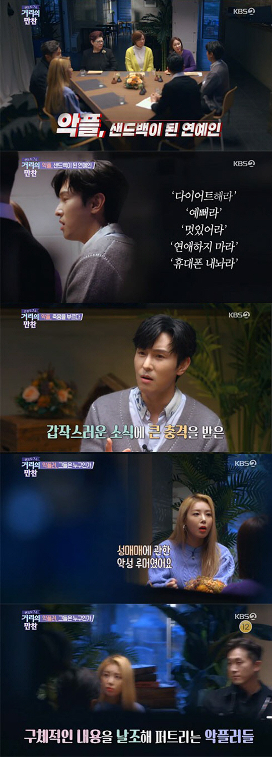 손수호 변호사는 "악플 때문에 활동 중단은 물론 해외 이민, 극단적 선택을 구체적으로 하는 경우도 있다"면서 "우리나라에 악플죄는 없고, 대신 모욕죄와 명예훼손이 있다"고 설명했다.
