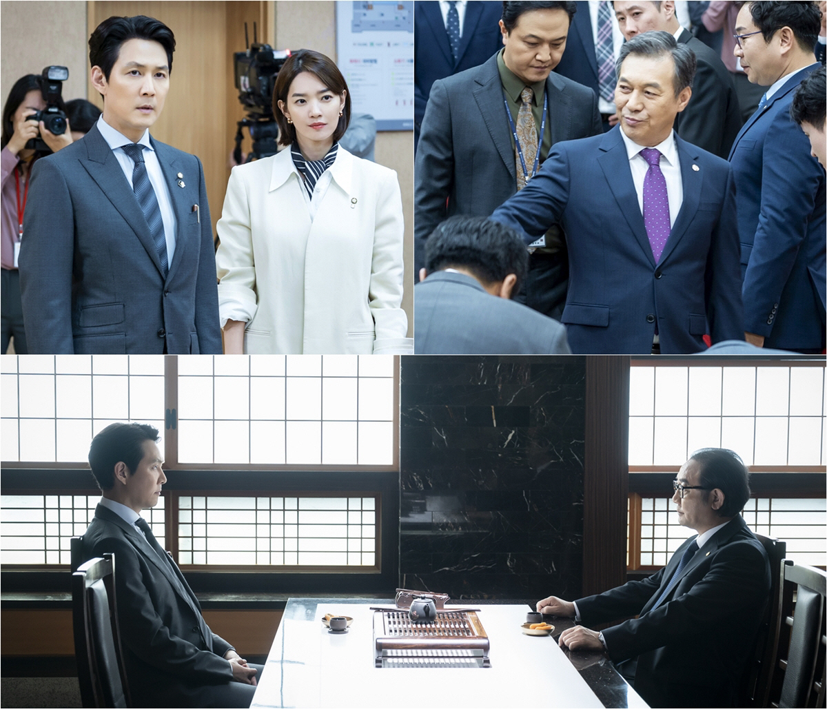 지난 25일 방영된 JTBC 월화드라마 '보좌관: 세상을 움직이는 사람들 시즌2'(극본 이대일, 연출 곽정환, 제작 스튜디오앤뉴, 이하 보좌관2) 5회에서 송희섭(김갑수)의 역공으로 국정조사가 무기한 연기됐다. 그동안 송희섭과 이창진(유성주) 대표, 그리고 영일그룹 성영기(고인범) 회장까지 연결된 비리의 뿌리를 뽑아내고자 국정조사를 목표로 달려온 장태준(이정재)과 강선영(신민아)의 노력이 모두 원점으로 돌아가게 된 것. 더 깊은 어둠의 그림자가 드리운 장태준은 공천권 비리로 검찰에 소환되는 조갑영(김홍파)을 보며 허탈감과 분노에 휩싸였다.