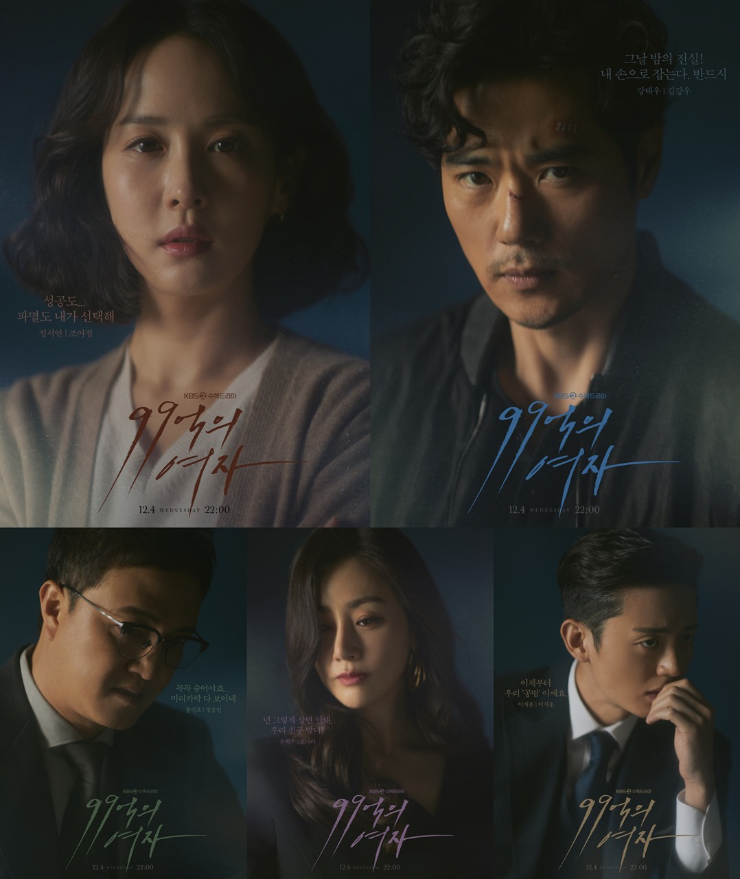 범접할 수 없는 포스의 5인5색 캐릭터 포스터를 공개하며 기대감을 높이고 있는 KBS 2TV 새 수목드라마 '99억의 여자'는 '동백꽃 필 무렵' 후속으로 12월 4일에 첫 방송될 예정이다.
