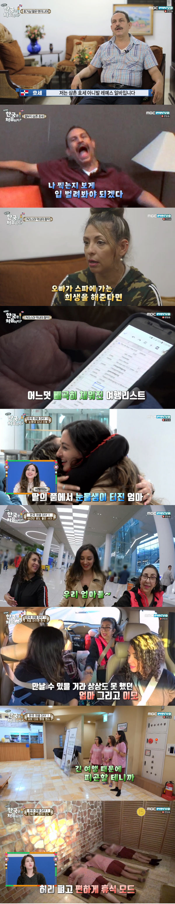 그레이스는 "긴 여행 때문에 피곤할 테니 조금 편하게 있으면 좋겠다"면서 찜질방으로 향했다. 찜질방에 들어선 엄마와 이모는 신기한 듯 이곳 저곳을 둘러봤다. 적외선방에서 피로를 푼 알레이다와 그레이스 모녀는 오랜만에 회포를 풀며 수다를 떨었다.