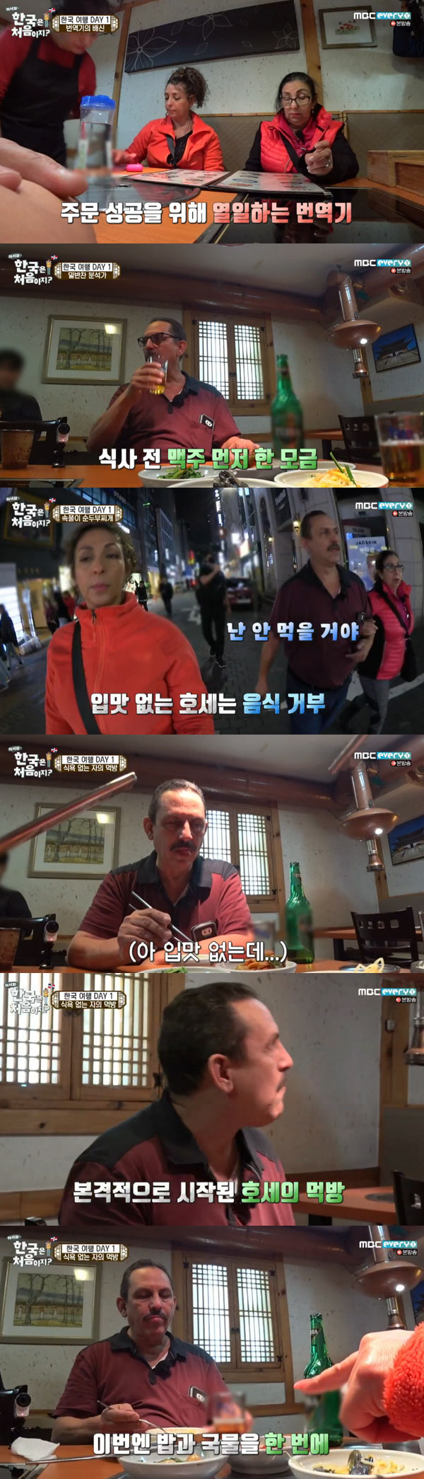 명동 거리를 걷던 남매는 다양한 메뉴를 판매하는 한식당 안으로 들어갔다. 처음 한국 식당에 방문한 세 남매는 생소한 음식만 적혀있는 메뉴판을 보고 당황스러워했다. 그러나 번역기의 도움을 받아 무사히 주문에 성공, 바로 순두부찌개가 나왔다. 그러나 주문한 것은 순두부 찌개 2개 뿐. 알고보니 앞서 호세는 "입맛이 없다" 저녁 식사를 하지 않겠다고 선언한 것.