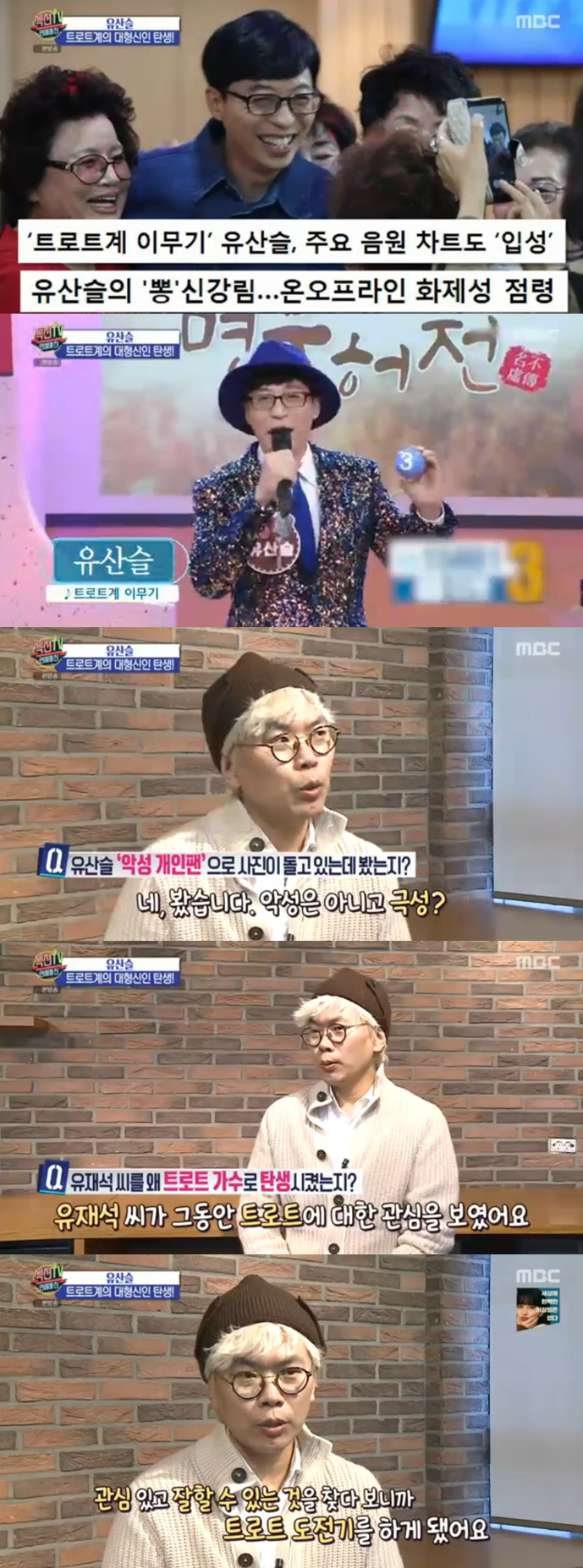 28일 방송된 MBC '섹션TV 연예통신'에서는 트로트 열풍에 합류한 대형 신인가수 유산슬의 신드롬이 조명됐다.