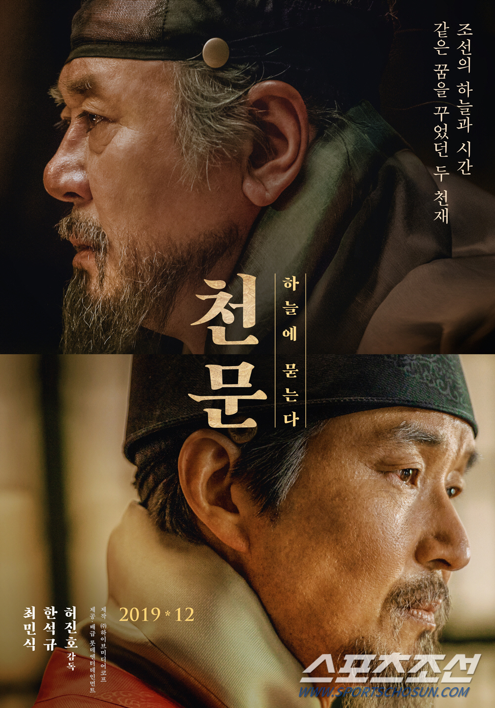 '천문: 하늘에 묻는다'는 조선의 하늘과 시간을 만들고자 했던 세종대왕과 그와 뜻을 함께했지만 한순간 역사에서 사라진 장영실의 숨겨진 이야기를 다룬 작품이다. 최민식, 한석규, 신구, 김홍파, 허준호, 김태우, 김원해, 임원희, 오광록, 박성훈, 전여빈 등이 가세했고 '덕혜옹주' '봄날은 간다' '8월의 크리스마스'의 허진호 감독이 메가폰을 잡았다. 오는 26일 개봉한다.