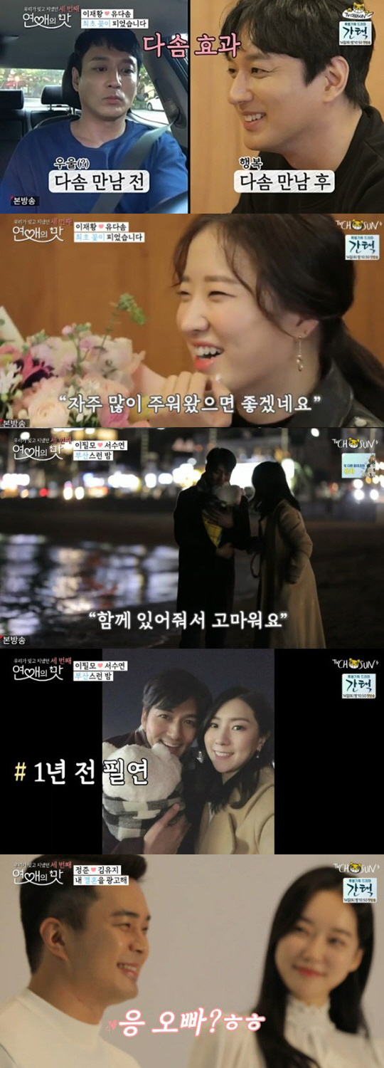 '연애의맛' 공식 커플 정준과 김유지는 함께 화장품 모델로 화보 촬영을 했다. 정준은 "1년 계약이다. 헤어지지 않을 것"이라며 자신감을 보였다. 정준은 왕년의 광고스타답게 김유지를 리드하며 편안하게 촬영에 임했다.