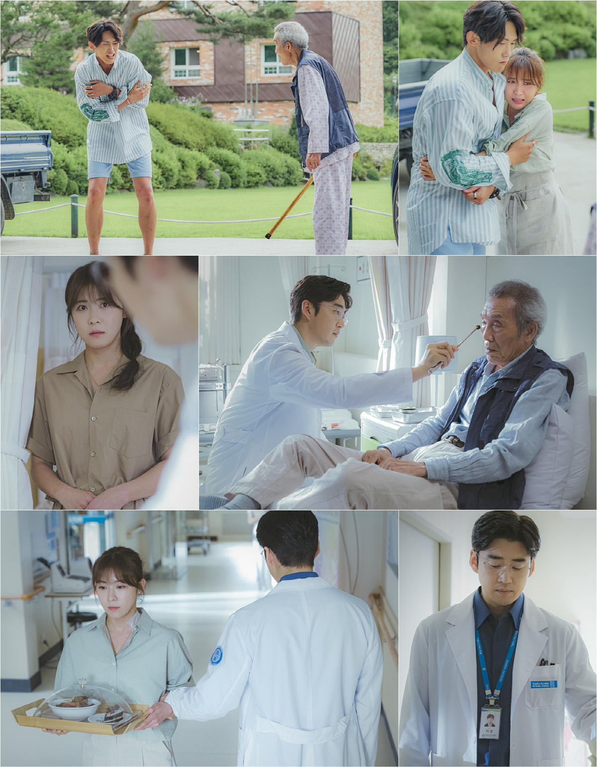 그런 가운데 공개된 사진에는 호스피스 병동에서 새로운 삶을 시작한 이강과 문차영의 모습이 담겨있다. 거성 호스피스의 막무가내 환자 김노인(오영수 분)의 지팡이와 대치 중인 사고뭉치 동생 문태현(민진웅 분). 난감한 표정으로 그들 사이를 막아선 문차영의 모습이 호기심을 자극한다. 교통사고의 후유증으로 거성 호스피스로 옮겨 오게 된 이강의 모습도 포착됐다. 거성 호스피스의 의사와 요리사로 재회한 이강과 문차영. 김노인을 묵묵히 치료하는 이강을 조심스럽게 바라보는 문차영의 표정에는 엇갈린 감정들이 새어 나온다. 병실 복도에서 스쳐 지나가는 문차영을 붙잡는 이강의 눈빛에도 복잡한 감정이 스친다.