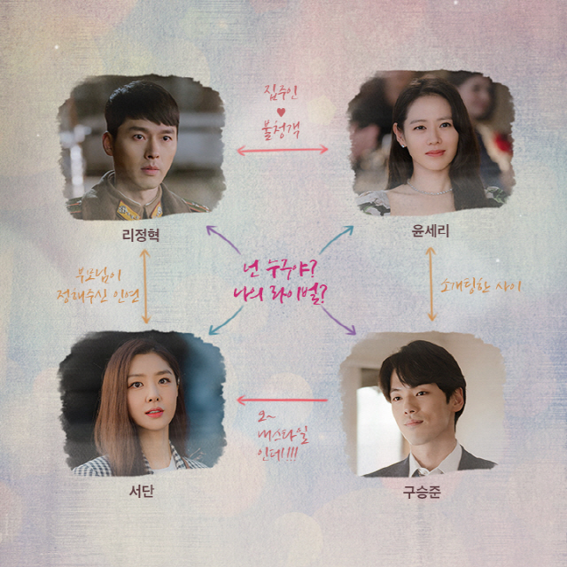 [스포츠조선닷컴 이지현 기자] '사랑의 불시착'이 첫 방송에 앞서 주연 4인방의 인물관계도를 통해 시선을 집중시키는 케미 포인트를 공개했다..