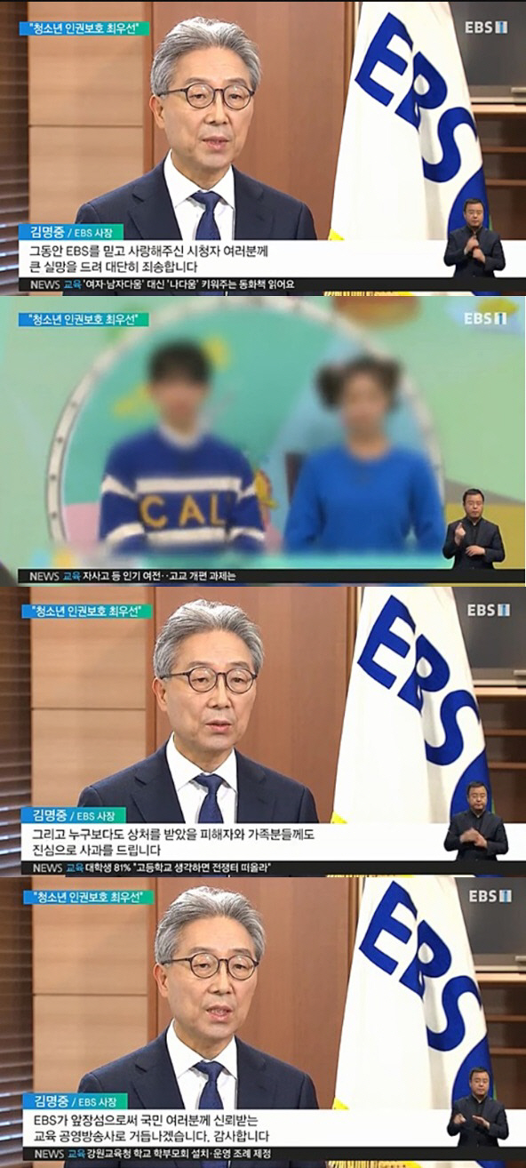 그동안 EBS를 믿고 사랑해주신 시청자 여러분께 큰 실망을 드려 대단히 죄송합니다.