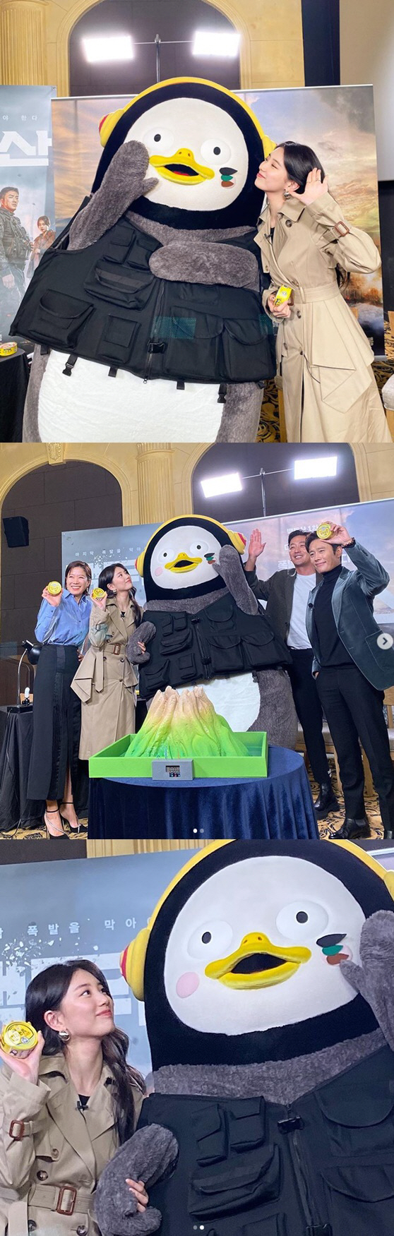 펭수는 이날 진행된 영화 '백두산' 레드카펫 쇼케이스에 깜짝 등장해 눈길을 끌었다. 펭수를 만난 수지는 "워낙 슈퍼스타라서 알고 있었다"라며 "실물이 훨씬 예쁘다"라고 말해 웃음을 자아냈다.