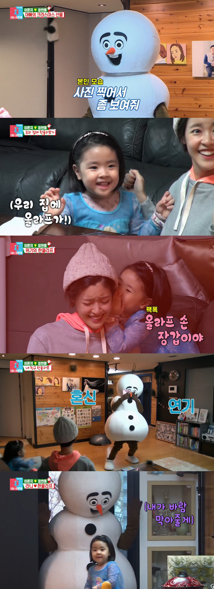 이윤지·정한울 부부가 준비한 크리스마스 이벤트는 올라프(?) 인형탈. '겨울왕국'을 좋아하는 라니를 속이기 위한 마지막 계획이자 정한울의 로망 실현 이벤트였다.