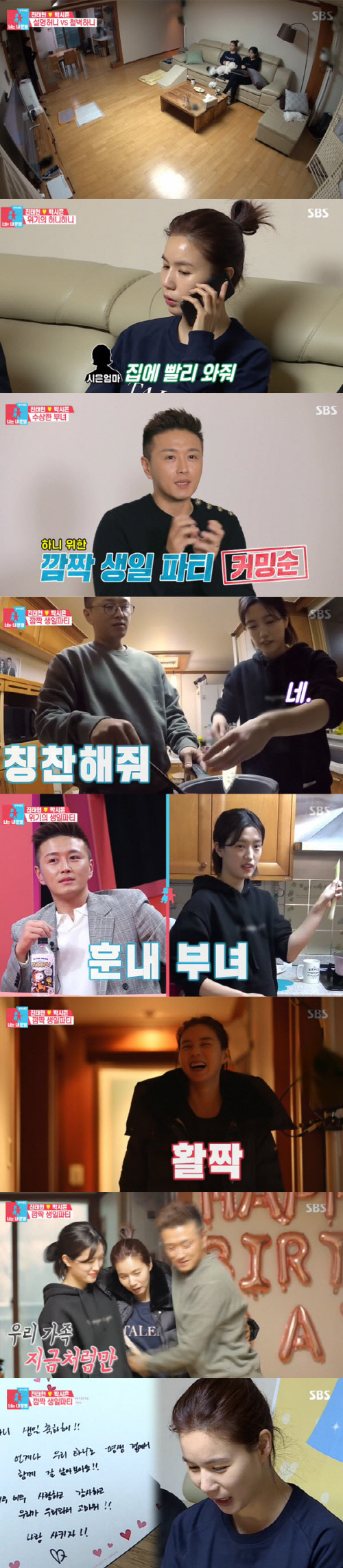 두 사람은 미역국, 불고기, 감자전으로 생일상을 차렸다. 또한 미리 준비한 플랜카드를 붙이고 케이크까지 준비했다. 잠시 뒤 집에 들어선 박시은은 "어쩐지 엄마가 이상하더라니"라며 두 사람의 깜짝 이벤트의 행복한 미소를 지었다.