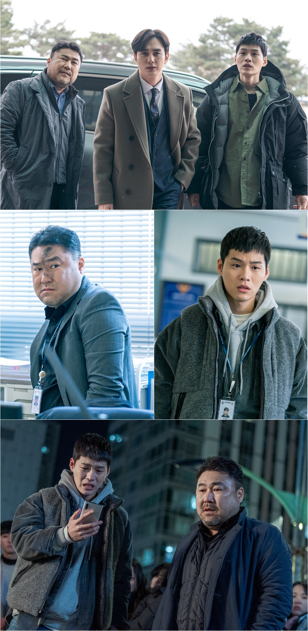 그런 가운데 공개된 사진 속 위풍당당하게 등장하는 '동백져스'의 비범한 아우라가 시선을 사로잡는다. 경찰계의 아이돌다운 비주얼을 뽐내는 동백의 뒤로 남다른 존재감을 과시하는 구경탄 반장과 오세훈 형사의 모습도 흥미롭다. 이어진 사진 속 카리스마를 잠시 내려놓은 구경탄 반장과 오세훈 형사의 반전 일상도 포착됐다. 사고유발자 동백의 뒷수습에 탈모를 달고 사는 구경탄 반장. 흑채를 몰래 뿌리다 깜짝 놀라는 그의 짠 내 폭발 얼굴이 웃음을 유발한다. 동백의 '기억스캔' 초능력을 인정하는 동시에 자신의 내면을 들킬까 두려워하는 동료들. 그들이 하는 동백의 험담에 불끈하는 건 그의 유일한 파트너이자 '동백바라기' 오세훈뿐이다. 동백의 든든한 조력자로 어떤 눈부신 팀워크를 발휘할지 벌써부터 궁금증을 유발한다. 그런가 하면 동백이 한바탕 쓸고 지나간 자리에 도착해 상황을 파악하는 두 사람의 허탈한 표정도 호기심을 자극한다.