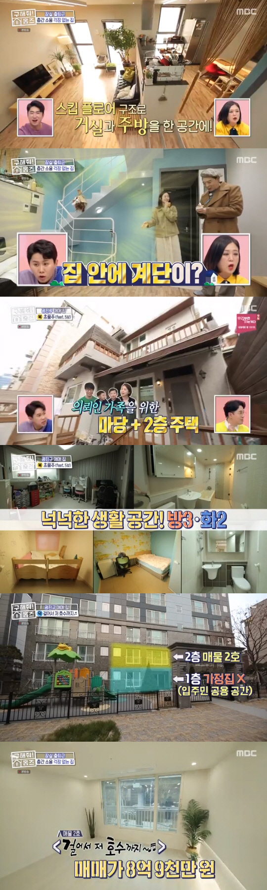 먼저 복팀의 장동민과 오영실은 송파구 송파동에 있는 필로티 구조의 신축 빌라를 소개했다. 거실 통창 밖으로 타워 뷰를 감상할 수 있는 '타워 뷰 하우스'는 계단 위 널찍한 복층 거실을 갖추고 있어 톱층이지만 층간 소음 걱정은 전혀 하지 않아도 되는 구조였다.