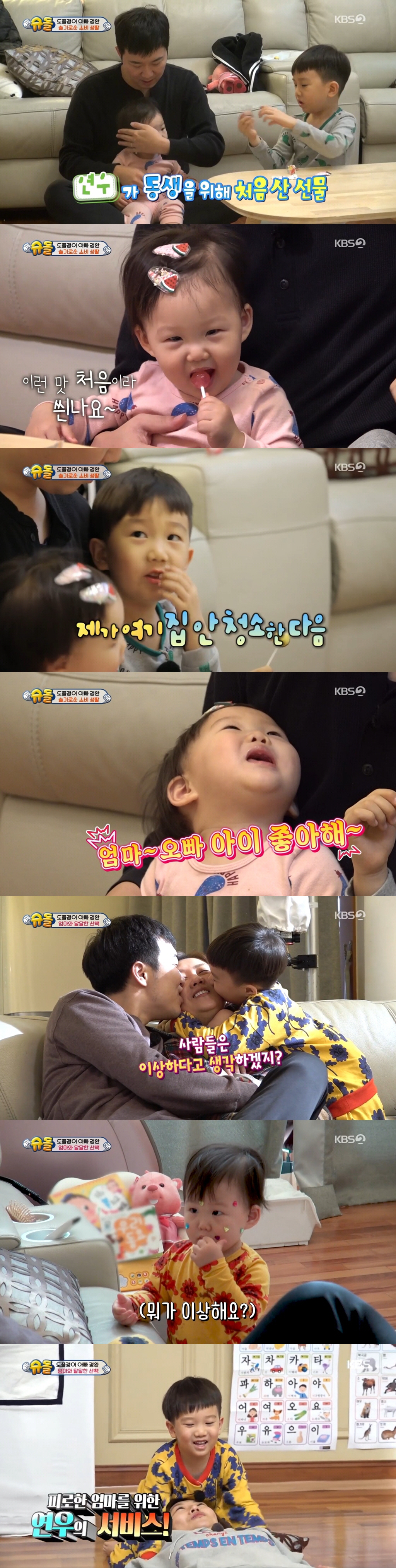 연우의 따뜻한 가족 사랑은 언제나 '슈돌' 시청자들에게 힐링을 선사한다. 말 한마디, 행동 하나가 언제나 감동인 연우가 앞으로는 또 어떤 모습으로 시청자들을 웃게 할지 궁금해진다.