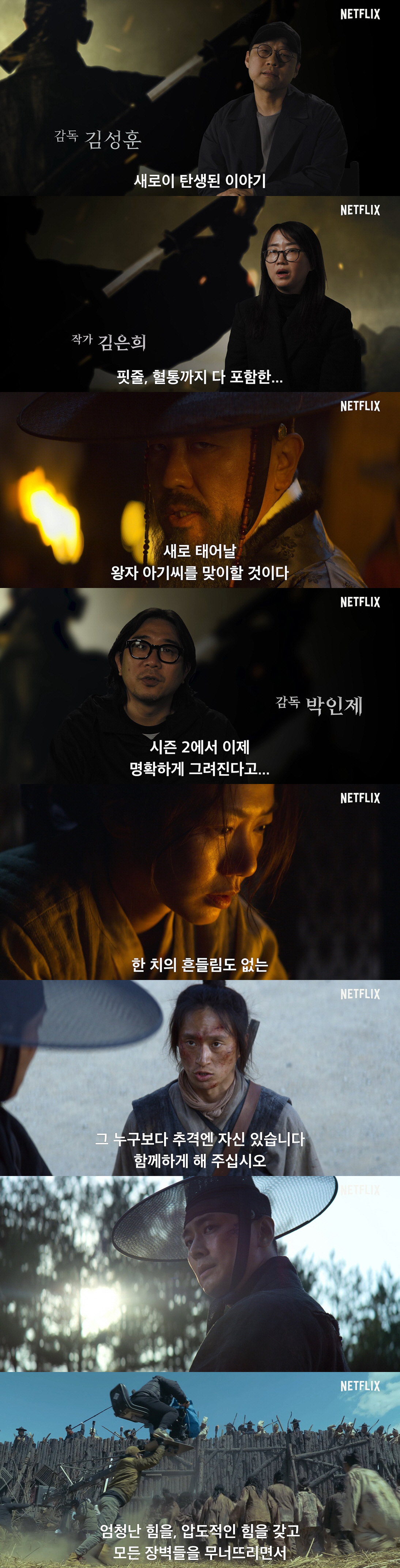 시즌 2의 포문을 여는 운포늪 전투와 한양의 궁을 배경으로 펼쳐지는 압도적인 피의 전투 신은 스펙터클한 볼거리와 함께 환란에 맞서 모든 것을 건 창의 의지를 보여준다. 2화부터 6화를 연출하며 새롭게 합류한 박인제 감독은 "진정한 왕, 백성을 위한 왕으로 성장해가는 과정"이 명확하게 드러난다는 말로 김성훈 감독에 이어 박감독이 보여줄 시즌2에 대해서 설명했다. 시즌1의 주요 배우진과 베테랑 제작진, 거기에 박인제 감독까지 합류해 더 깊고 커진 이야기와 스펙터클로 돌아올 '킹덤2'에 대한 기대감이 점점 더 고조되고 있다.