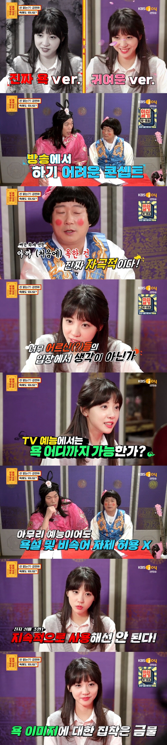 그러면서 김민아는 이수근과 서장훈 앞에서도 망설임 없이 욕을 내뱉으며 귀여운 '욕 폭격기'로 변신했다. 착한 얼굴과 상반되는 선을 넘는 김민아의 모습에 이수근과 서장훈은 "이건 진짠데?"라며 당황했다.