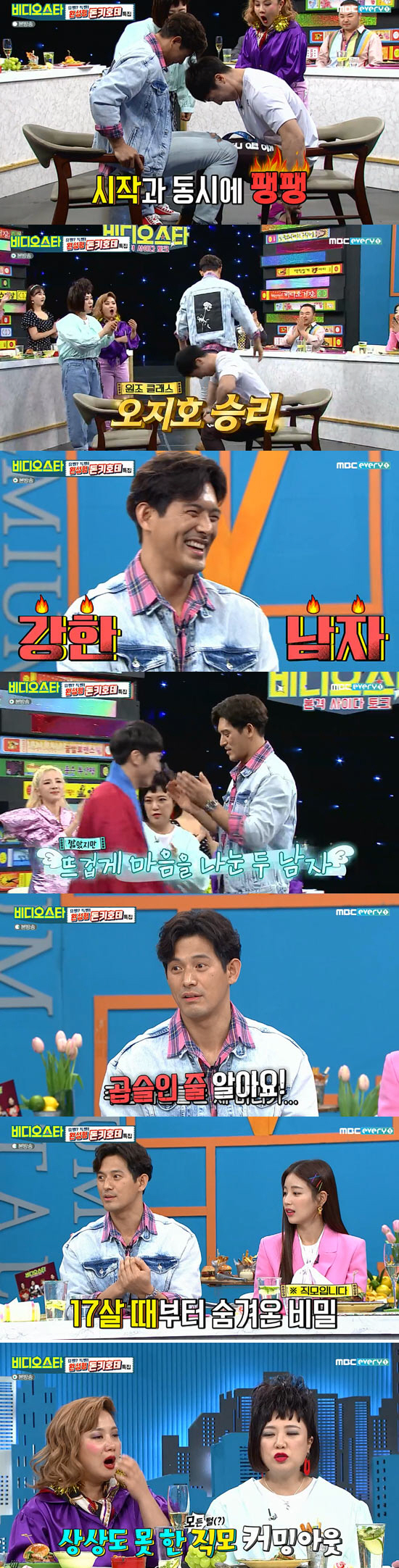 오지호는 연예계 허벅지 씨름의 창시자로서 현직 20대 씨름선수와 허벅지 씨름 대결을 펼쳐 승리해 박수를 받았다. MC 박나래는 "오지호가 허벅지 씨름을 연예계 최로로 만들었다"며 강호동, 서장훈, 박찬호 등을 허벅지 씨름으로 꺾으며 '연예계 최강 허벅지 왕'으로 불린 명성을 소개했다.