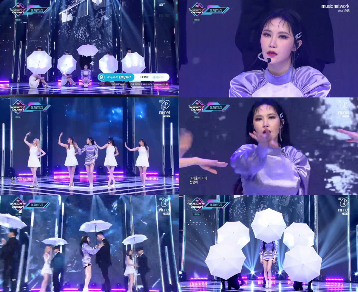 또한 예지는 자신만의 독보적인 음색과 탄탄한 보컬 실력은 물론, 포인트 안무 '홈 스텝'을 비롯해 감각적인 우산 퍼포먼스로 보는 재미를 더하며 무대를 장악했다.