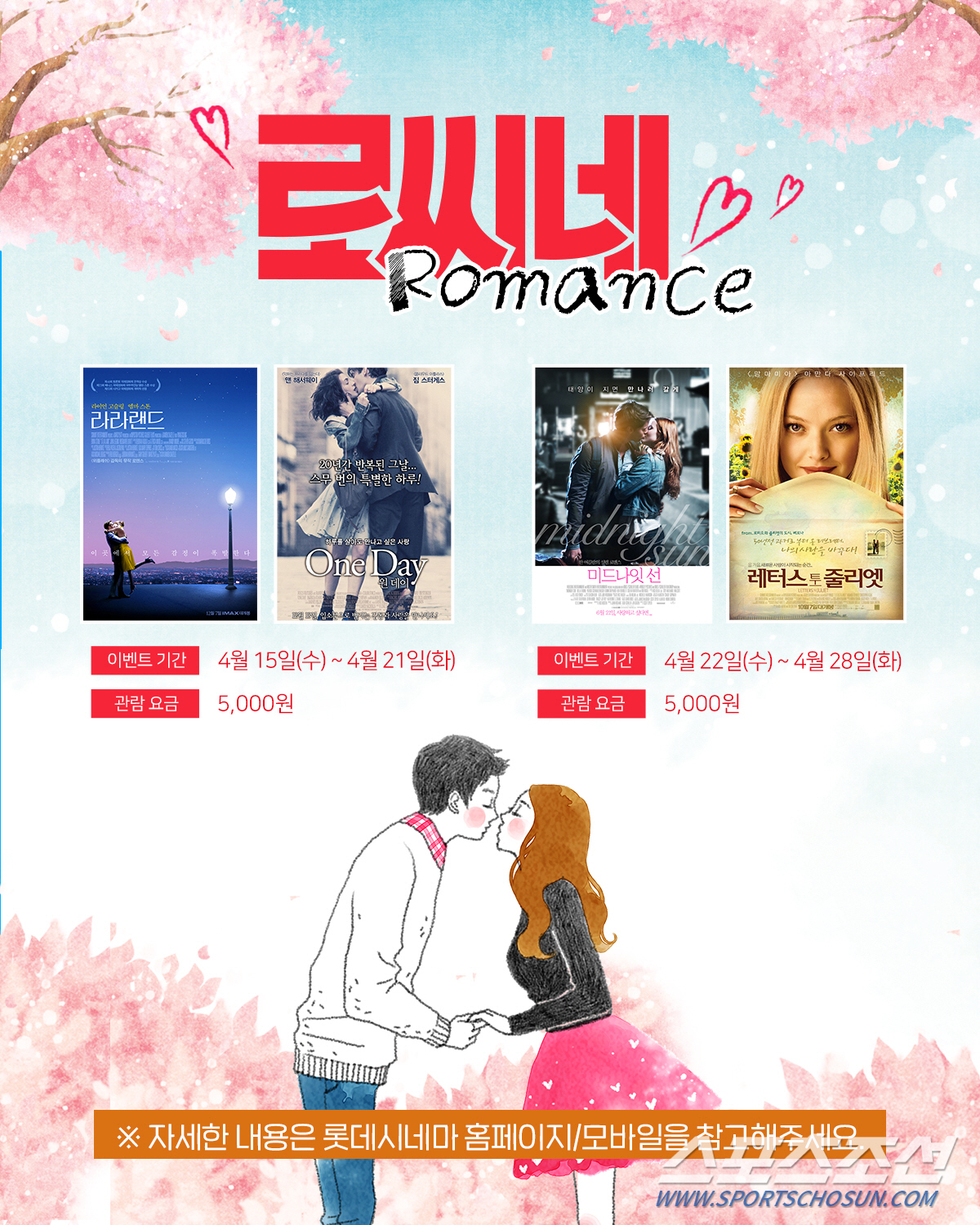 [스포츠조선 이승미 기자]롯데시네마는 4월 15일(수)부터 봄 날씨와 잘 어우러지는 로맨스 장르 영화들을 4편 선정해 재상영하는'로씨네 로맨스' 기획전을 개최한다.