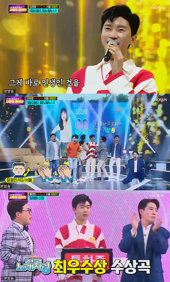 마지막 콜은 경기도 팬. "경기도 성남시에 살고 있는 영탁 왕자님의 팬"이라고 소개한 20대 여성 팬은 "눈주름 사이에 끼어 죽고 싶다. 눈웃음과 약한 허벅지도 좋다"고 말했다. 영탁은 싸이의 '챔피언'을 선곡하며 임영웅과 합동 무대를 제안했다. 갑자기 결성된 웅탁 듀오. '미스터트롯'의 진과 선은 준비없는 무대에도 현란한 랩과 군무 댄스, 흥 폭발로 올하트 100점을 받았다. 두 사람은 팬에게 선물까지 전달했다.