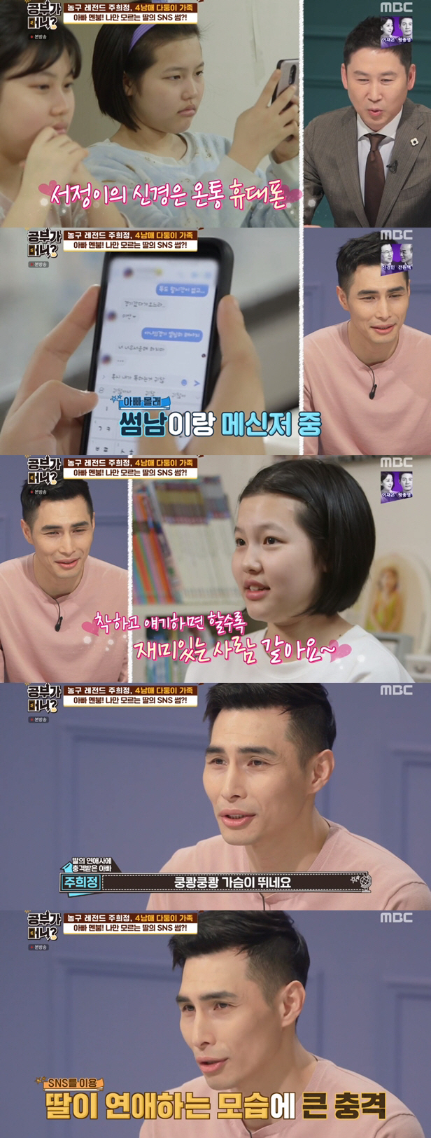 [스포츠조선닷컴 정유나 기자] '공부가 머니' 농구 레전드 주희정이 딸이 썸남과 SNS로 메신저하는 모습에 충격을 받았다.