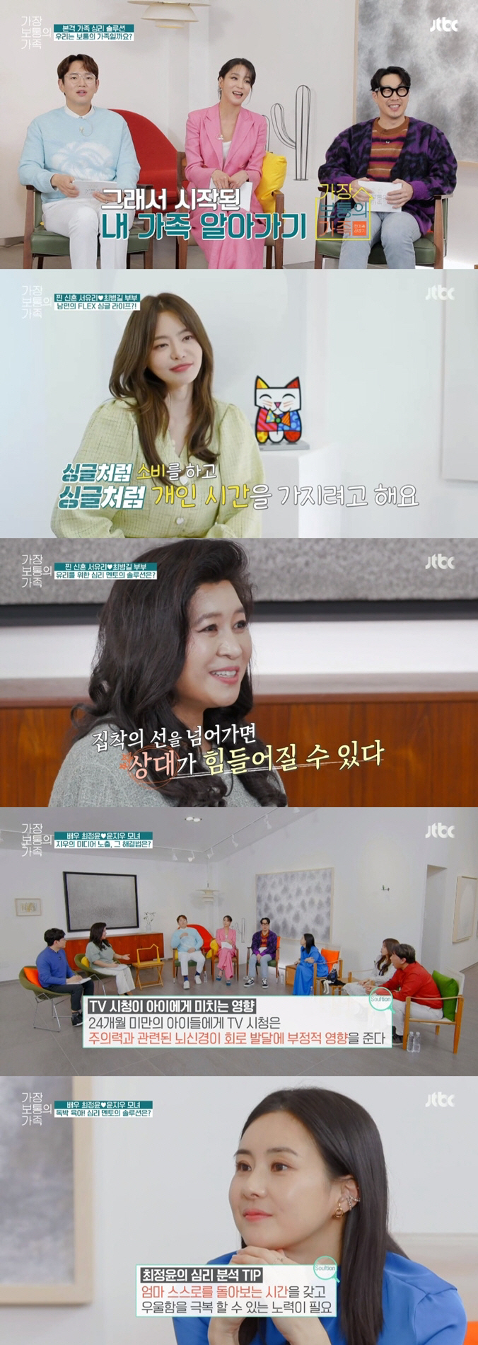 25일 첫 방송된 JTBC '가장 보통의 가족'에서는 최정윤과 서유리 가족이 첫 솔루션 가족으로 등장해 행복해보이던 이들의 남모를 고민을 담아냈다. 또한 3MC 한고은, 하하, 장성규가 각각 아내와 남편으로서 유쾌한 현실 토크를 더하고 가족 심리 멘토 오은영 정신학 박사가 함께하며 맞춤형 솔루션을 제시해 대한민국의 모든 가족들의 눈을 반짝이게 했다.