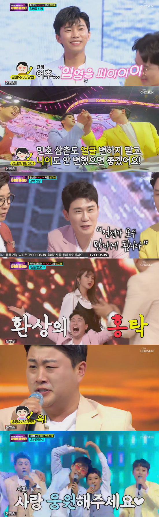 신청자의 강력한 요청에 얼떨결에 무대 가운데에 선 임영웅은 "진짜 가능한가요? 당황스러워서 집중이 안 된다"며 경연 때보다 더 긴장된 모습을 보였다. 하지만 노래가 시작되자 익숙한 음성이 스튜디오에서 펼쳐졌고, 홍진영이 깜짝 등장했다. 홍진영과 임영웅은 감미로운 듀엣 세레나데 무대를 만들었다.
