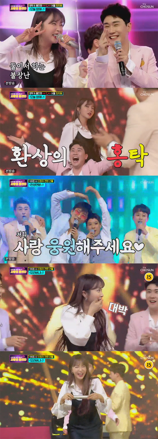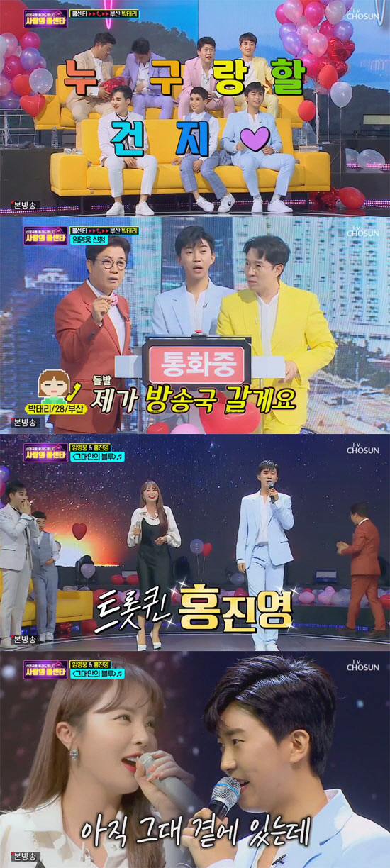 하지만 노래가 시작되자 무대에 홍진영이 깜짝 등장해 모두를 놀라게 했다. 미스테리한 사연자의 정체가 바로 홍진영이었던 것. 홍진영은 임영웅과 감미로운 듀엣 무대를 선보였다.