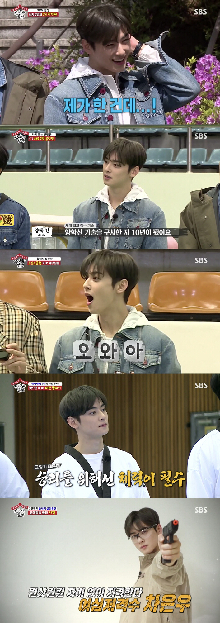 이처럼 차은우는 '집사부일체'에 새로운 '열정 바람'을 불어넣는 제자로 활약해 시선을 사로잡았다. 오프닝의 지압 발판은 물론 사부의 강력한 발차기도 버텨내며 집념의 모습을 보여주기도 하고, 승부욕에서 비롯된 적극적인 움직임으로 사부들의 칭찬을 한 몸에 받기도 했다.