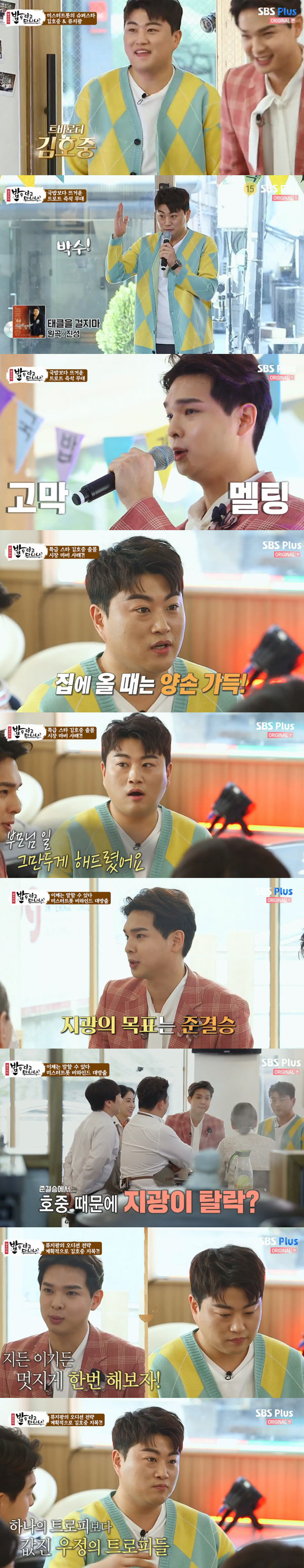 류지광은 '김호중 때문에 탈락했다'는 말에 "호중이가 보컬의 괴물이라는 칭호가 있는데 함께 무대에 서는 것만으로도 영광이었다. 그 마음으로 호중이를 택했다"고 떠올렸다.