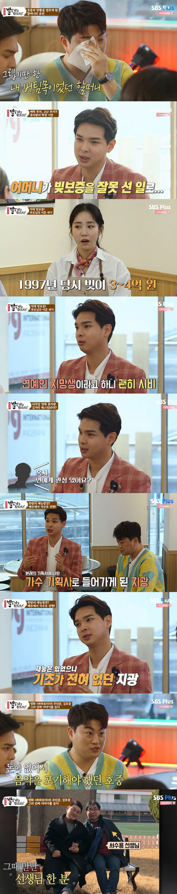 류지광도 경제적으로 힘들었던 시간을 떠올렸다. 류지광은 "초등학교 6학년 때 어머니가 보증을 잘못 서 아파트에서 월세방으로 이사했다. 1997년 당시 빚이 3,4억원 정도 됐다"며 생활고가 시작될 수밖에 없었던 이유를 밝혔다.