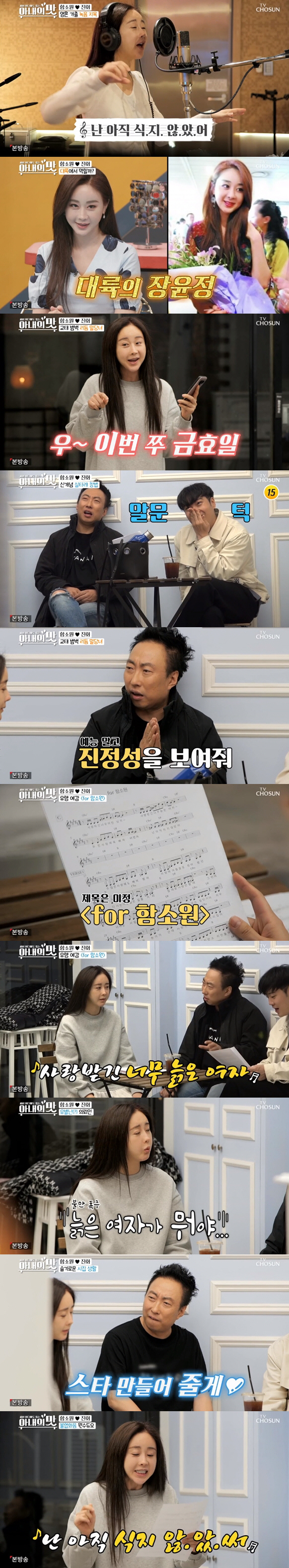 이어 박명수는 함소원을 위해 작곡한 'for 함소원'(가제목)이라는 곡을 공개했다. 하지만 함소원은 '늙은 여자' '주책 바가지' 등의 가사에 불만을 드러냈고, 박명수와 의견 충돌을 했다. 박명수는 "자꾸 이럴거면 곡 받지 말아라"고 강하게 나갔지만, 이내 "너를 생각하고 쓴 가사이다. 그래야 시청자들의 공감도도 높다. 작곡가 유재환이 마술사이다. 네가 부른 노래를 장윤정 노래처럼 변신시켜논다. 우리만 믿고 따라오면 된다"고 설득했다.