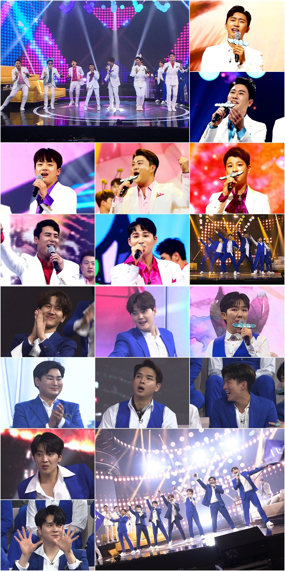이와 관련 오는 7일(목) 밤 10시 방송되는 '사랑의 콜센타' 6회에서 TOP7은 '재도전 도전장'을 내민 레인보우와 '불꽃 튀는 데스매치'를 벌인다. 레인보우는 '미스터트롯' 본 경연 때의 수모를 갚기 위해 '사랑의 콜센타'로 직접 찾아온 상태. 8명 멤버 모두 파란색 의상으로 통일해 스튜디오에 모습을 드러낸 레인보우는 칼군무가 돋보이는 파워풀하고 화려한 퍼포먼스를 선보여 등장부터 기선 제압에 나섰다.
