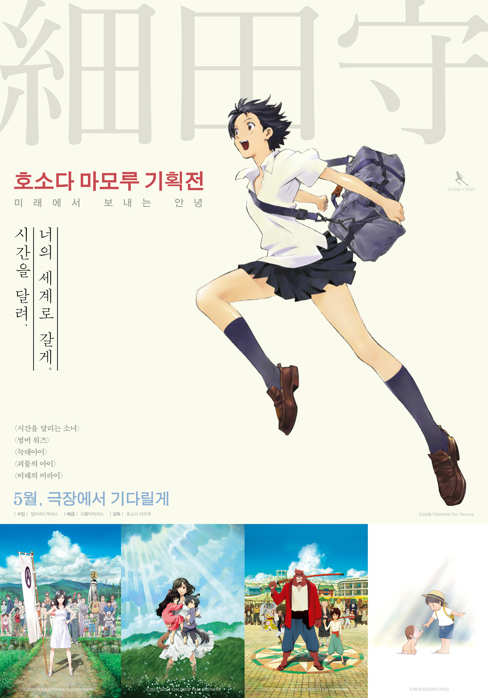 '호소다 마모루 기획전: 미래에서 보내는 안녕'은 5월 14일, '시간을 달리는 소녀'와 '썸머 워즈'를 시작으로 5월 21일에는 '늑대아이'를, 5월 28일에는 '괴물의 아이'와 '미래의 미라이'까지 극장에서 연이어 만날 수 있다.