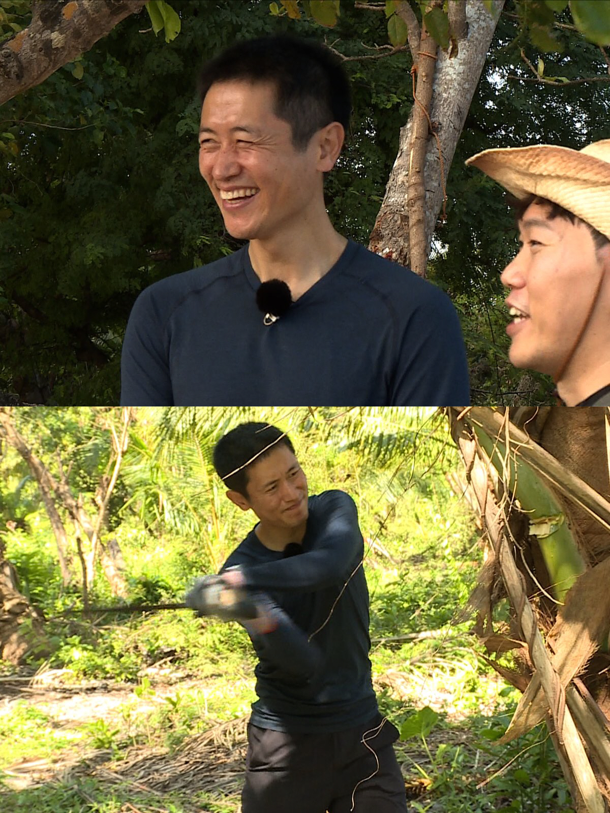 정글로 들어간 두 사람은 이내 적당한 잎을 발견했고, 이영표가 먼저 잎을 채취하기 위해 도끼를 들고 나섰다. 이영표는 제작진과 사전 인터뷰 당시 "강원도 홍천 산골에서 자랐다. 나무 오르는 건 자신 있다"며, 정글 생존에 앞서 강한 자신감을 보인 바 있다. 이영표는 시골 출신답게 정확히 측면을 노려서 한 번에 잎 채취에 성공할 정도로 수준급의 도끼질을 선보였다.