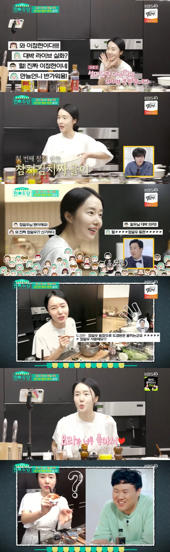 이 가운데 이정현은 라이브 방송에 시청자로 참여한 도경완과 정일우를 발견하고 반가워했다. 그러나 도경완과 정일우에 대한 이정현의 반응이 확연히 달라 웃음을 자아냈다.