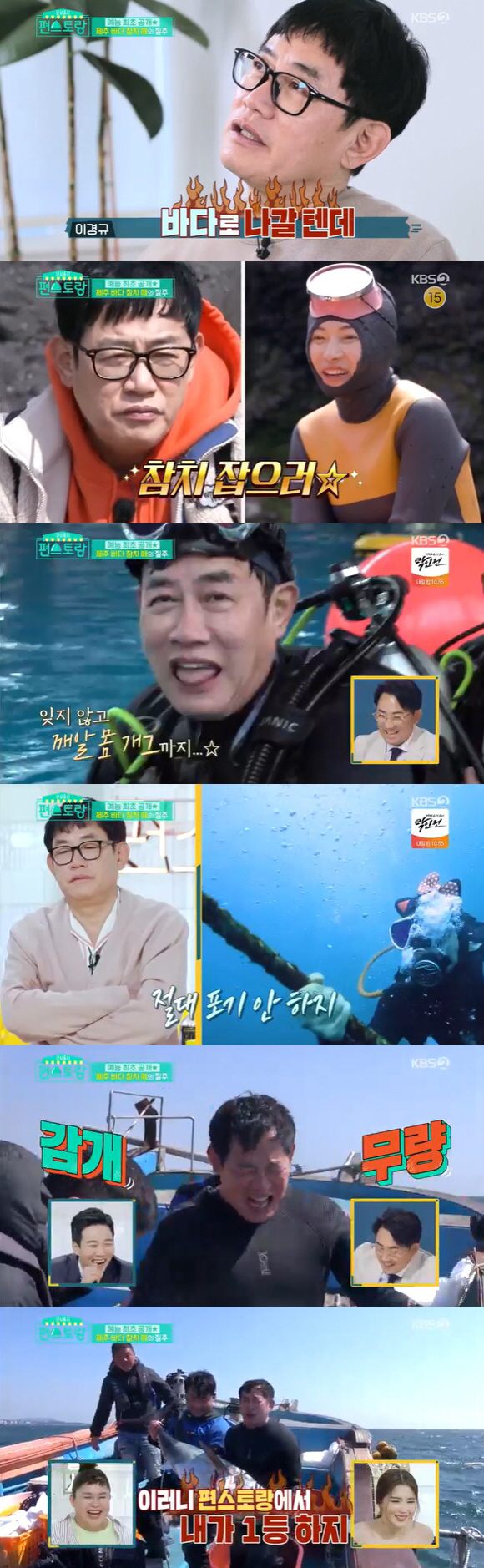 직접 살아있는 참치를 보고 배 위로 올라온 이경규는 흥분을 감추지 못했다. 이어 포획한 참치를 들고 포즈를 취하며 "야 이것들아. 이러니 '편스토랑'에서 내가 1등 하지. 너희는 이런 거 못 해. 날로 먹지 마"라고 외쳐 웃음을 안겼다. 또 "출시하네 마네 그런 거 갖고 싸우지들 말고 나를 던져서 해라. 난 하지 않냐"며 생색내 폭소케 했다.