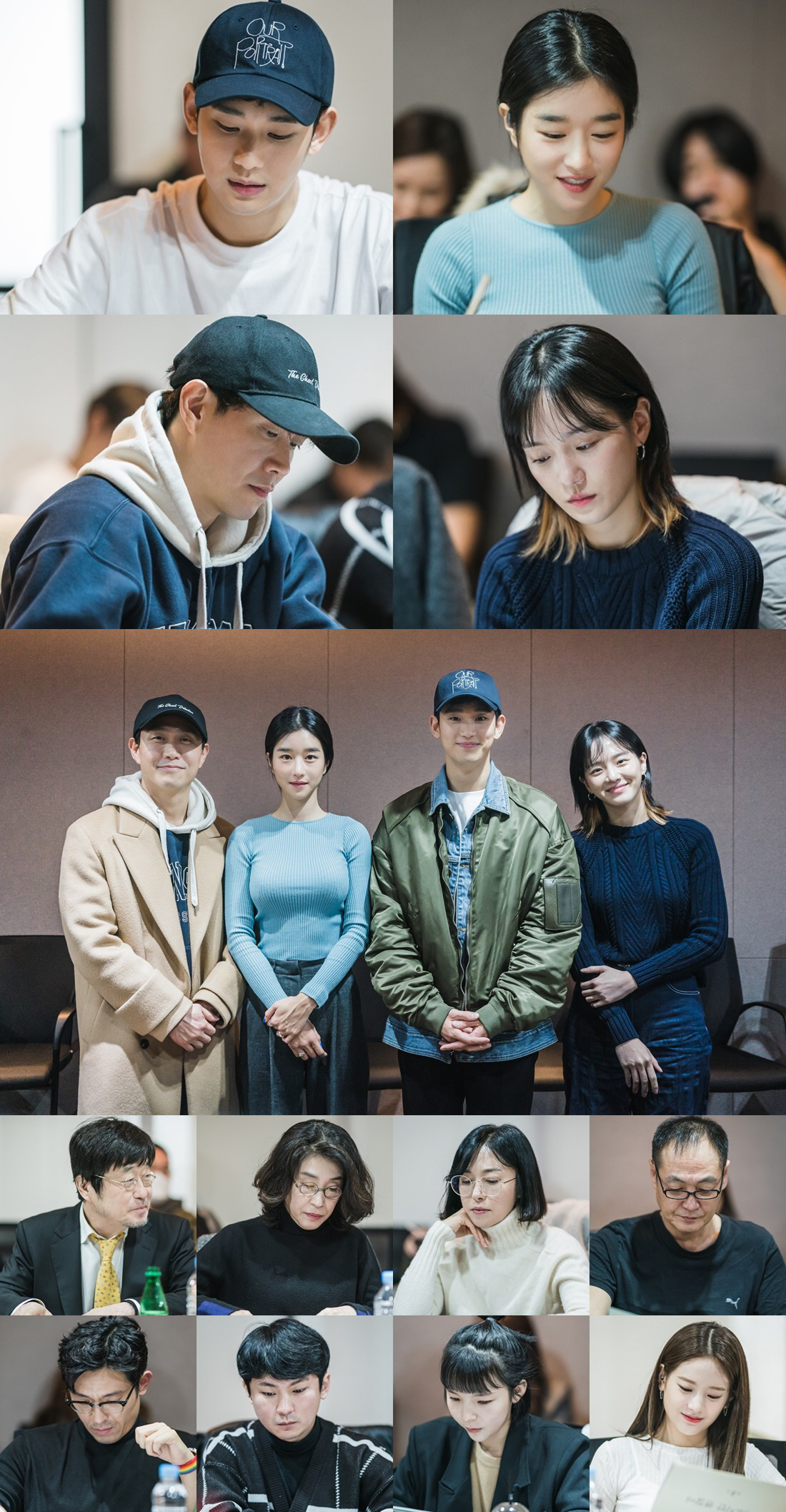 공개된 영상과 같이 이날 대본리딩 현장에는 박신우 감독과 조용 작가를 비롯해 김수현(문강태 역), 서예지(고문영 역), 오정세(문상태 역), 박규영(남주리 역), 김주헌(이상인 역), 김창완(오지왕 역), 김미경(강순덕 역), 장영남(박행자 역), 이얼(고대환 역), 강기둥(조재수 역), 박진주(유승재 역), 장규리(선별 역) 등 작품을 이끌어갈 주요 배우들이 한 자리에 모였다.