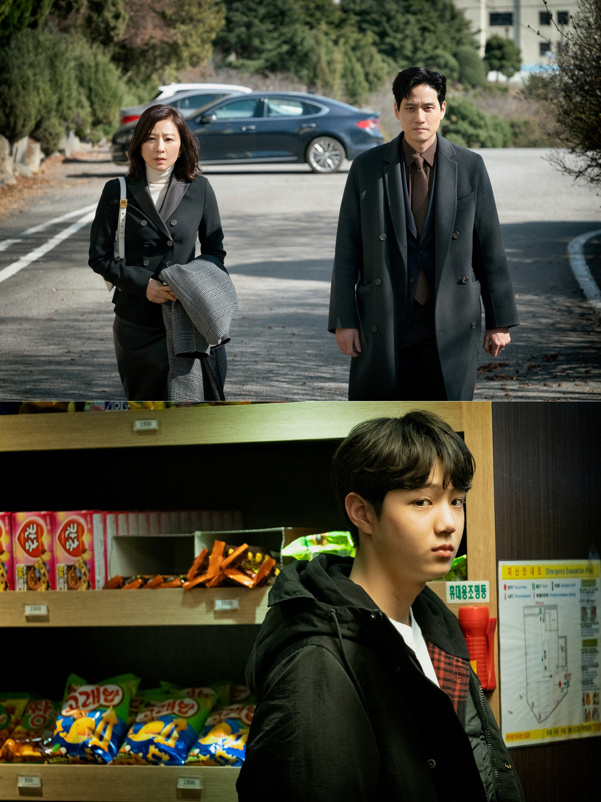 그런 가운데 공개된 사진에서 지선우와 이태오의 사뭇 달라진 관계 구도가 눈에 띈다. 자신의 인생에서 서로를 도려내기 위해 달려왔던 지선우와 이태오는 나란히 서서 어딘가로 향해가고 있다. 흔들리는 지선우의 눈빛과 곁에 선 이태오의 표정에서 심상치 않은 사건이 두 사람에게 닥쳤음을 암시한다. 지선우와 이태오의 파국이 남긴 후유증으로 흔들리고 있는 이준영은 곪아버린 상처만으로도 견디기 버거운 상태. 피할 수도 없이 어른들의 싸움을 적나라하게 지켜봤던 이준영은 이미 지선우, 이태오에게 마음의 문을 닫기 시작했다. 이준영의 공허한 눈빛에서 위태로움이 느껴진다. '부부'라는 고리가 끊어진 뒤에도 감정을 떨쳐내지 못했던 지선우와 이태오는 '부모'라는 절대 끊어낼 수 없는 관계 앞에서 다시 나란히 서게 됐다.