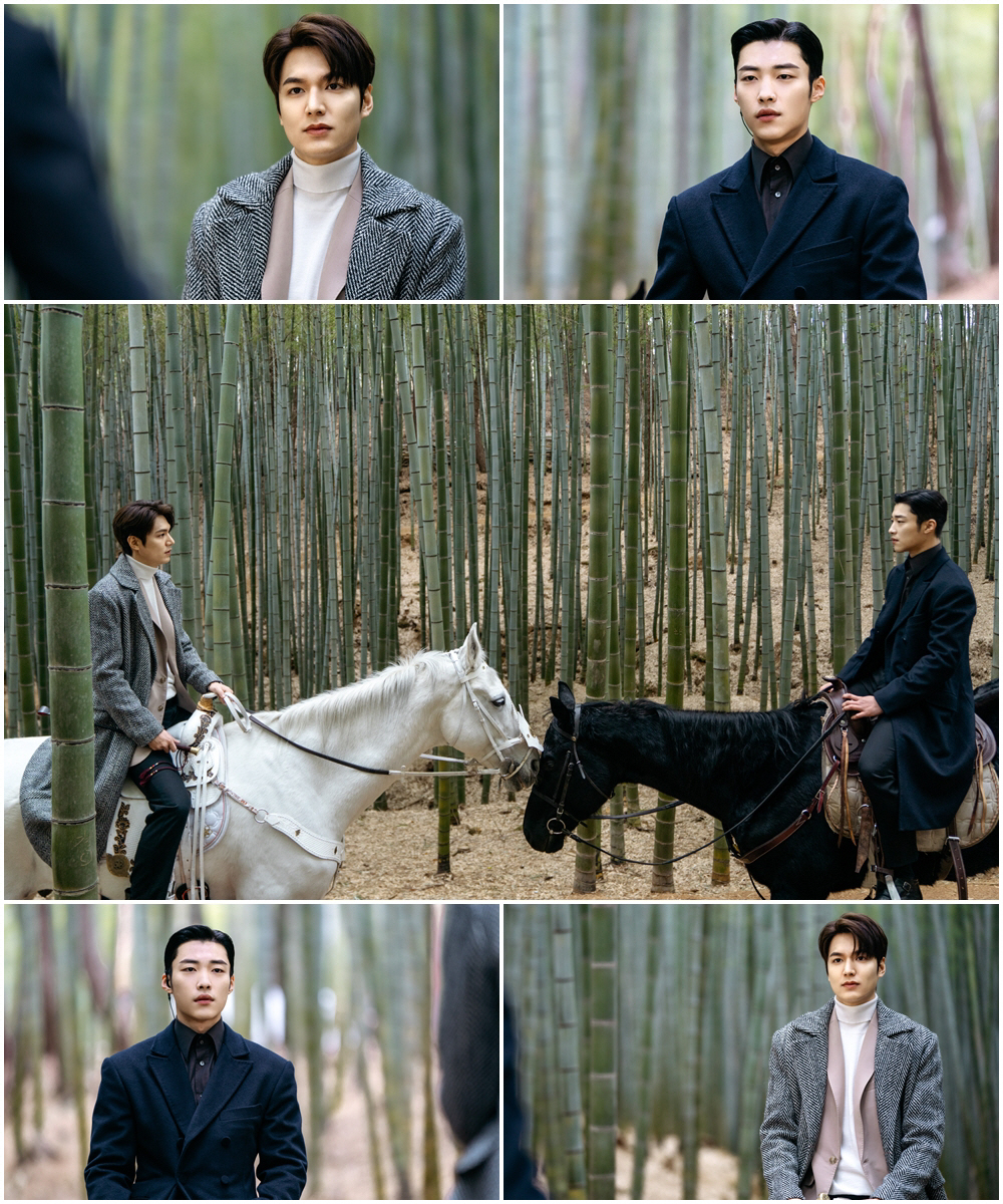 이와 관련 8일(오늘) 방송될 7회에서는 이민호와 우도환이 대숲 한가운데에서 한 치도 물러설 수 없는 기 싸움을 벌이는 모습이 담긴다. 극중 평행세계를 넘어가기 위해 대숲으로 간 이곤이 자신의 앞을 막고 있는 조영(우도환)과 맞닥뜨리는 장면. 이곤은 부드럽게 미소를 띤 채 조영을 바라보다가 이내 결연한 표정으로 위엄 있는 포스를 드러낸다. 조영은 주군을 향한 걱정스러운 눈빛으로 반드시 지키겠다는 다짐을 반복하듯 굳은 경계를 내비치는 것. 과연 서로에 대한 단단한 신뢰를 지키고 있는 두 사람이 이토록 대립하게 된 이유는 무엇인지, 이곤과 함께 조영까지 대숲에 있는 당간지주를 넘게 될 것인지 궁금증이 증폭되고 있다.