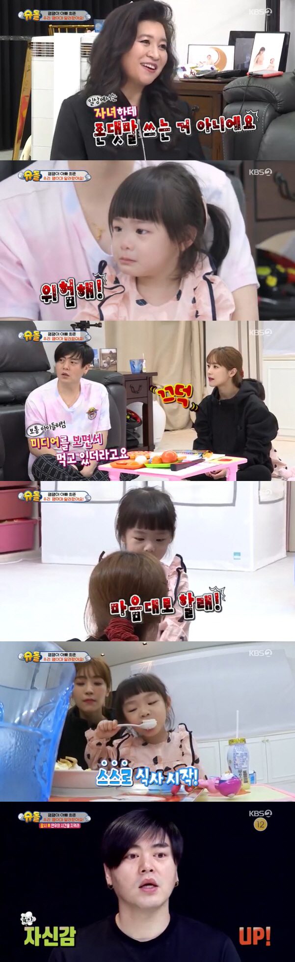 다시 한번 문희준과 소율은 잼잼이가 투정을 멈출 때까지 기다렸고, 잼잼이의 투정도 점점 줄어들기 시작했다. 또한 잼잼이는 엄마, 아빠가 다시 밥 먹기를 유도하자 스스로 밥 먹기 시작했다. 이에 문희준과 소율은 잼잼이를 칭찬으로 격려했고, 뿌듯해진 잼잼이는 미디어 없이 밥 먹기에 성공했다.