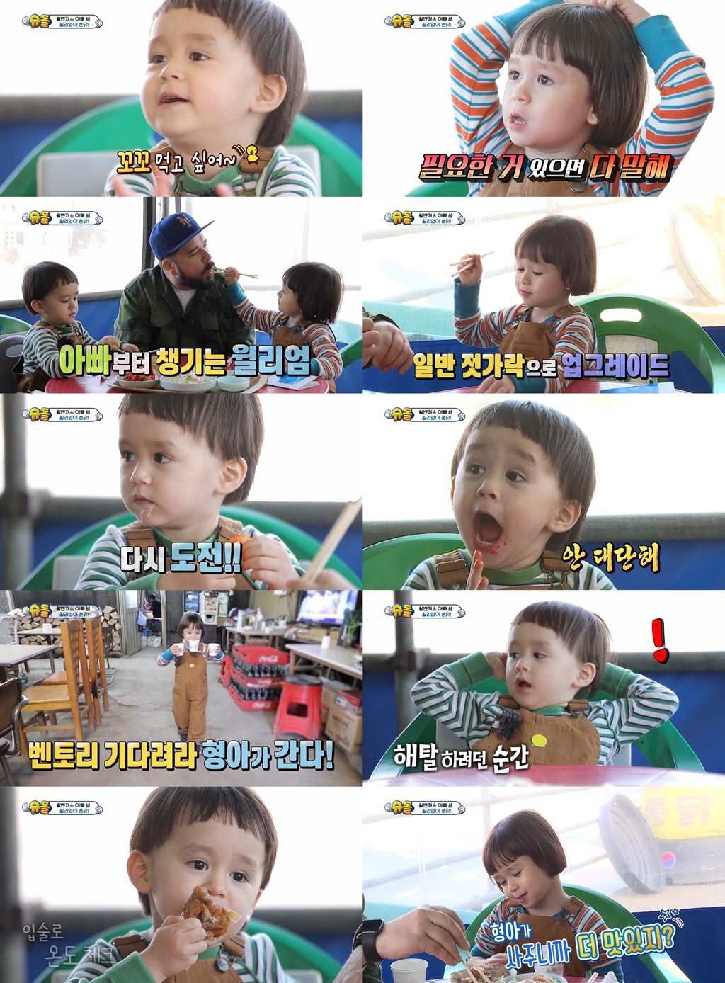 이곳에서 아이들은 훌쩍 성장한 모습으로 샘 아빠를 놀라게 했다. 윌리엄은 처음으로 교정용 젓가락이 아닌 일반 젓가락을 사용했으며, 벤틀리는 다시 김치 먹기에 도전했다. 그러나 아직 어린 벤틀리에게 김치 먹방은 무리였다. 벤틀리는 온몸으로 매워하며 물을 필요로 했다.