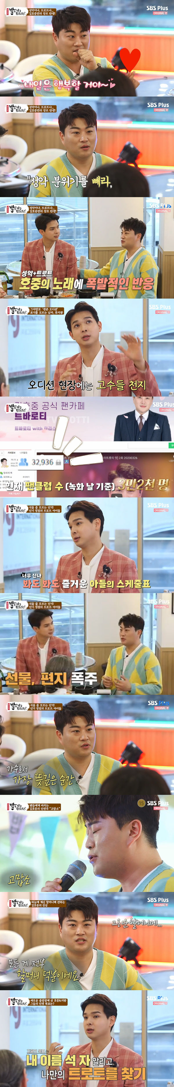 류지광은 부모님의 반응에 대해 "'미스터트롯' 나갈때마다 실시간 검색어 1위를 했다. 존재감을 확실하게 알렸다"면서 "부모님이 스케줄 표를 공유하신다. 거의 매니저다. 아침에 '팬카페에 뭐가 올라왔다'고 알려주신다"면서 행복한 미소를 지었다.