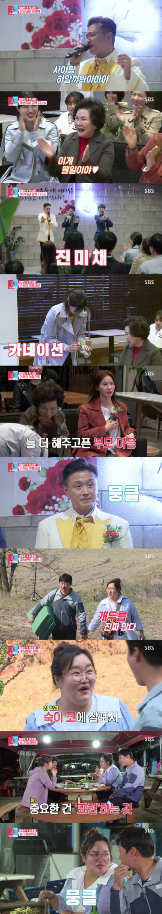 진태현은 '미스터트롯' 김희재, 이찬원과 함께 트로트 3인조 '진미채'를 결성, 장모님을 위한 깜짝 디너쇼를 펼치는 모습이 그려졌다. 박시은의 어머니와 언니 등 처가 식구들이 총출동한 가운데 진태현은 "어버이날과 생신을 축하드리며 막내 사위의 축하 공연이 있겠습니다"라며 장모님이 좋아하는 '둥지'를 열창했다. 이어 숨어있던 김희재·이찬원이 등장, 세 사람은 '흥 폭발' 트로트 무대로 장모님을 기쁘게 했다. 장모님은 "진짜 너무 좋았다. 우리 사위 최고"라고 말했다.
