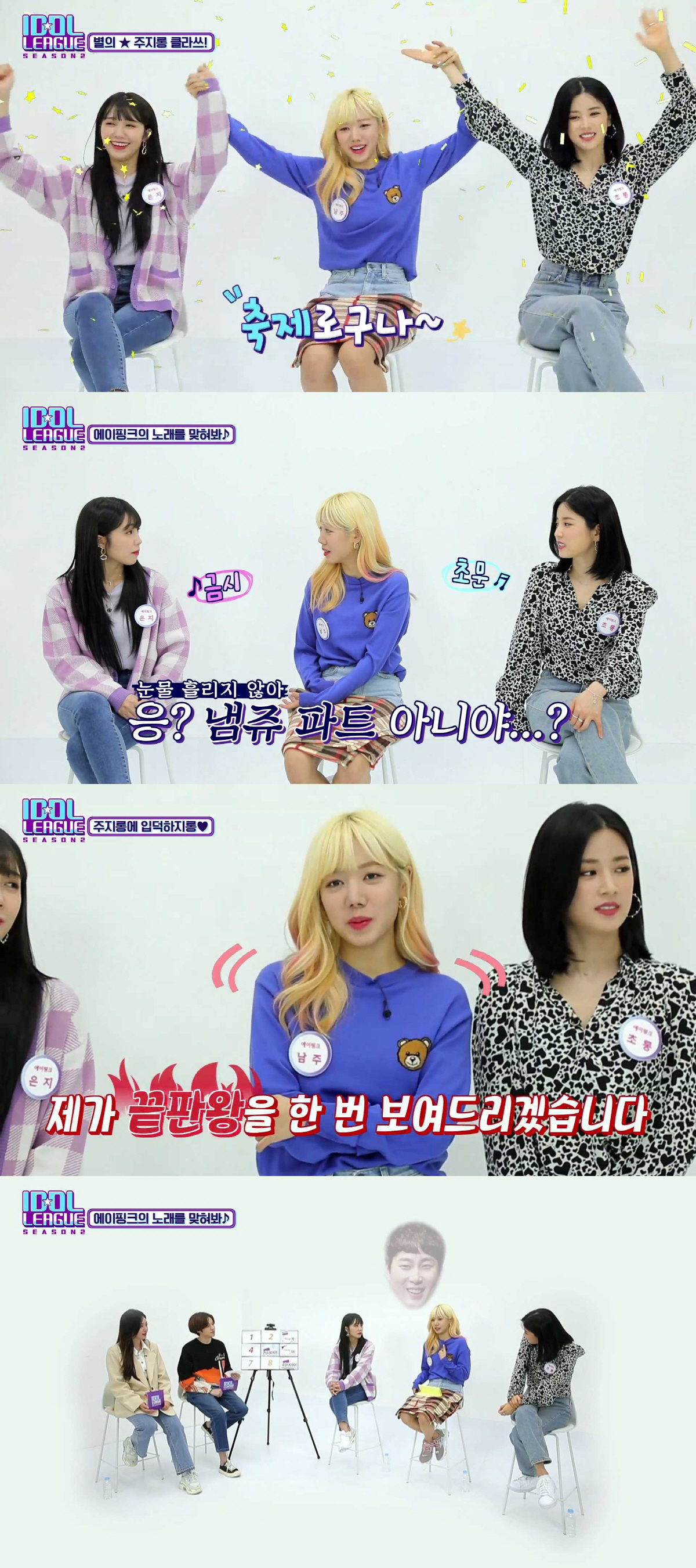 [스포츠조선닷컴 김수현 기자] '에이핑크' 남주가 '판다'를 향한 애교 끝판왕을 보여줬다. 은지와 초롱이도 '아이돌리그'에서 팬들의 마음을 녹였다.