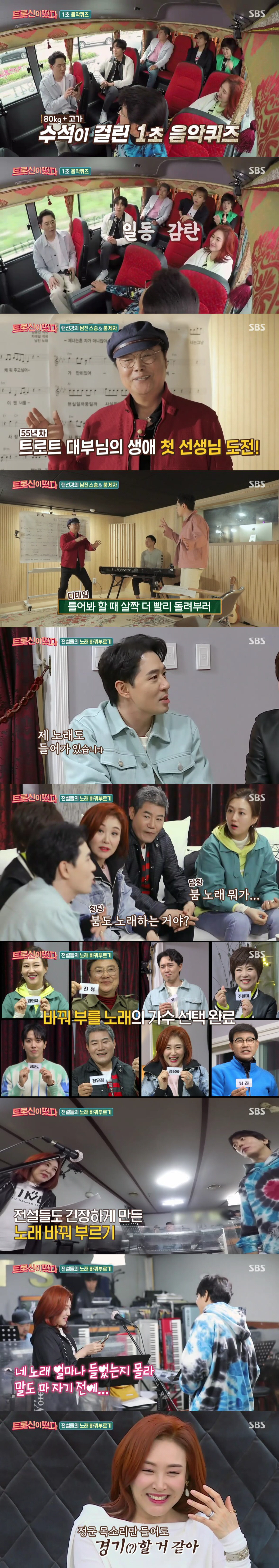 설운도의 별장에 모인 트롯신들은 평생 한번도 해보지 않았던 '랜선 강의'에 도전했다. 먼저, 첫 번째 일타 강사로는 대부 남진이 나섰다. 여기에 붐이 남진의 학생으로 나와 호흡을 맞췄다. 남진은 본인의 곡 '둥지'가 탄생된 비화를 알려주는가 하면 노래의 맛을 살리려면 어디를 강조해야 하는지 한 소절 한 소절 짚으며 알려줘 귀에 쏙쏙 들어왔다. 특히, 남진 특유의 '고관절 댄스'까지 전수하자 붐은 "전 노래를 배우러 왔는데…"하면서도 '둥지' 노래와 춤을 찰떡같이 소화해 남진의 수제자로 등극했다.
